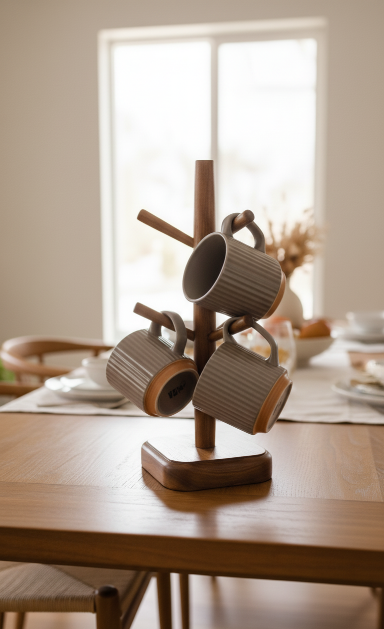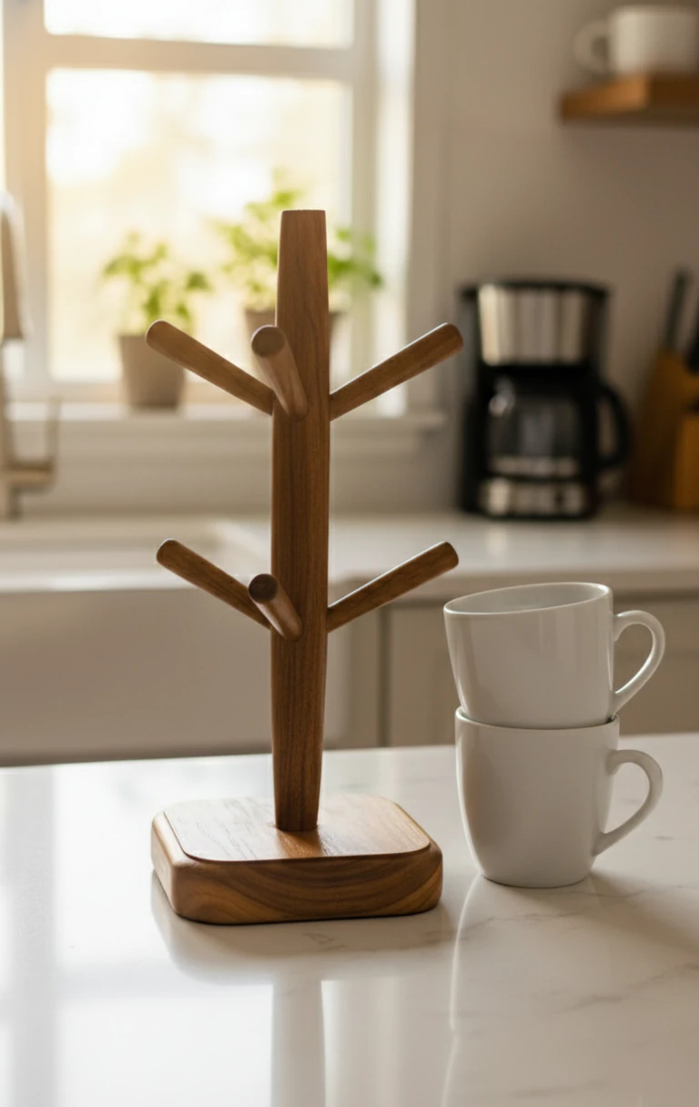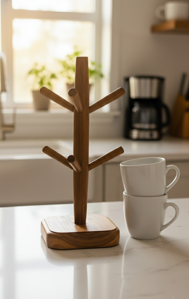 Bring elegance and order to your kitchen with this beautifully handmade teak wood mug stand. Its sleek design and natural finish make it a timeless piece — blending craftsmanship, functionality, and beauty.